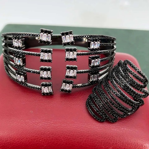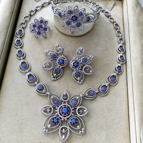 H061A D065E lüks Trendy çiçek yaprak geometri kübik zirkonya yüksek Set düğün bilezik yüzük kadınlar için yıldönümü