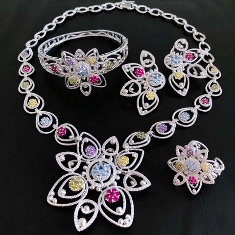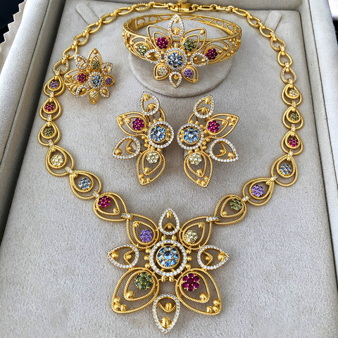 T114C High-End tasarımcı düğün takısı Set 4 adet zirkon çiçekler nijerya İtalyan brezilya altın-moda kolye toptan
