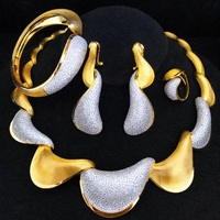 T337B yeni Trendy nijerya 18k altın kaplama İtalyan şampanya rengi düğün mücevher seti moda Libya kolye takı setleri