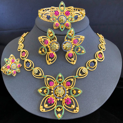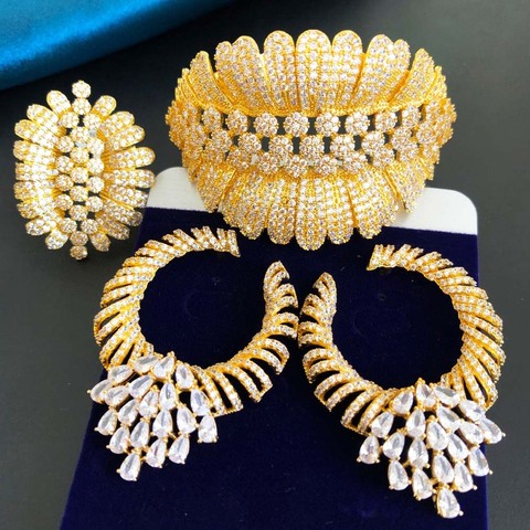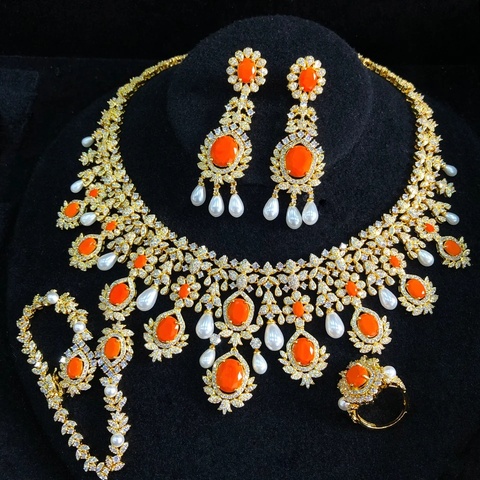 T389A ünlü marka 4 adet altın turuncu turkuaz afrika seti pirinç kadın düğün partileri gelinler için zirkon kristal Dubai gelin