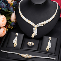 T012A yaprak Charms kadınlar için 4 adet lüks nijeryalı takı seti düğün kübik zirkon Dubai gelin kolye küpe bileklik yüzük seti